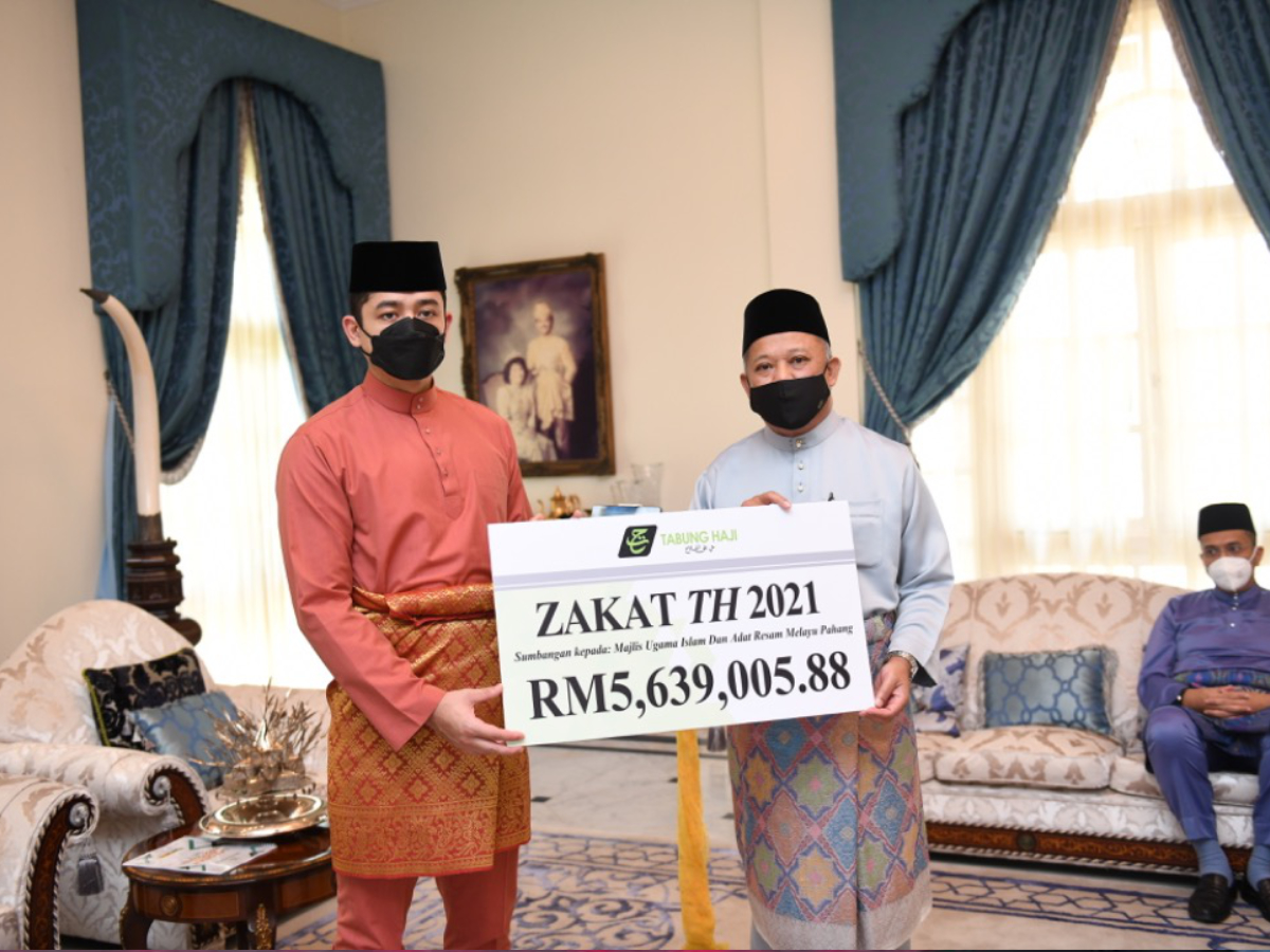 Kebawah Duli Yang Maha Mulia Pemangku Raja Pahang, Tengku Mahkota Tengku Hassanal Ibrahim Alam Shah Ibni Al-Sultan Abdullah Ri’ayatuddin Al-Mustafa Billah Shah yang juga Tuanku Yang Dipertua Majlis Ugama Islam dan Adat Resam Melayu Pahang (MUIP) telah berkenan menerima bayaran zakat daripada tujuh badan korporat bertempat di Istana Abdulaziz, Kuantan. Sebanyak RM8.45 juta bayaran zakat telah diterima daripada Lembaga Tabung Haji (RM5.64 juta), CIMB Islamic Bank Berhad (RM1.1 juta), Maybank Islamic Berhad (RM578,186.63), Bank Islam Malaysia Berhad (RM370,000), FOMEMA Sdn Bhd (RM350,000), Maybank Investment Bank Berhad (RM211,622) dan Nurraysa Global Sdn Bhd (200,000).