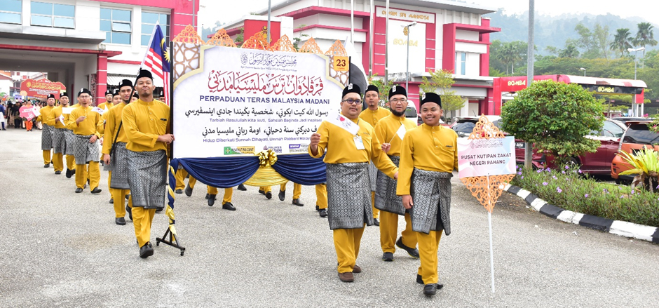 KUANTAN, 28 September 2023 bersamaan 12 Rabiulawwal 1445 Hijrah –Pusat Kutipan Zakat (PKZ) Pahang telah menyertai Perbarisan Dan Sepanduk sempena Majlis Sambutan Maulidur Rasul Peringkat Negeri Pahang 2023. Sebanyak empat puluh enam (46) penyertaan daripada dua (2) kategori iaitu jabatan Kerajaan/badan berkanun/swasta dan NGO/sekolah/IPT telah memeriahkan sambutan pada kali ini. Perarakan Sepanduk dan Selawat telah bermula dari Ibu Pejabat Bomba negeri Pahang dan berakhir di Dewan Sukpa Bandar Indera Mahkota.