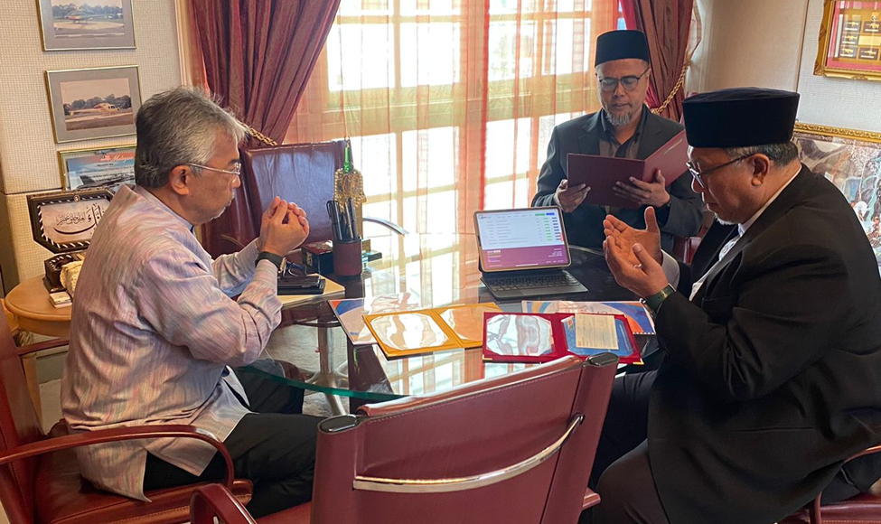 KUANTAN, 17 April 2023 bersamaan 26 Ramadan 1444H – Segala puji dan syukur ke hadrat Allah S,W.T di atas limpah rahmatNya, Kebawah Duli Yang Maha Mulia Seri Paduka Baginda Yang Dipertuan Agong, Al-Sultan Abdullah Ri’ayatuddin Al-Mustafa Billah Shah al-Haj Ibni Almarhum Sultan Ahmad Shah Al-Musta’in Billah dan Kebawah Duli Yang Maha Mulia Seri Paduka Baginda Raja Permaisuri Agong Tunku Azizah Maimunah Iskandariah Bini Al-Marhum Al-Mutawakkil Alallah Sultan Iskandar Al-Haj telah berkenan menunaikan kewajipan zakat harta baginda berdua bertempat di Istana Abduaziz, Kuantan.
